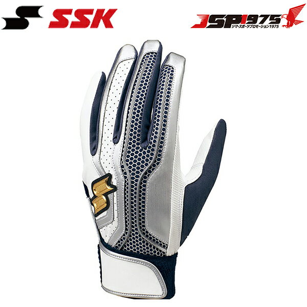【送料無料】【エスエスケイ】SSK バッターズグラブ 一般用シングルバンド手袋 Mサイズ ホワイト×ネイビー×シルバー バッティング 手袋 打撃用 グローブ 両手用 シングルベルト バッティング手袋 野球 野球用品 ebg5002w