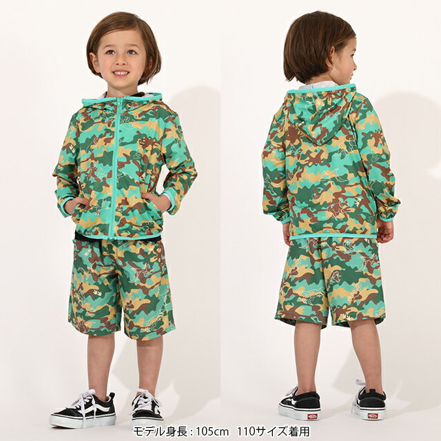 7/28〜 【50%OFF クリアランスSALE】 恐竜 総柄 UVカット 清涼速乾 ジップパーカー 6513K ベビードール BABYDOLL 子供服 ベビー キッズ 男の子 女の子