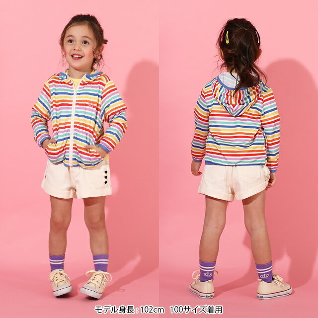 ベビーサイズ キッズ 女の子 こども 子ども服 長袖 トップス 羽織り 水着 スイムウェア スイムグッズ プール 海 海水浴 ビーチ 水遊び UVカット効果 uv フード付き ブルゾン ライトアウター ジップパーカー 紫外線対策 UV対策 UVカット 冷房対策 薄手 レインボー カラフル 日焼け防止 日よけ防止 アウトドア レジャー ラッシュガード ★